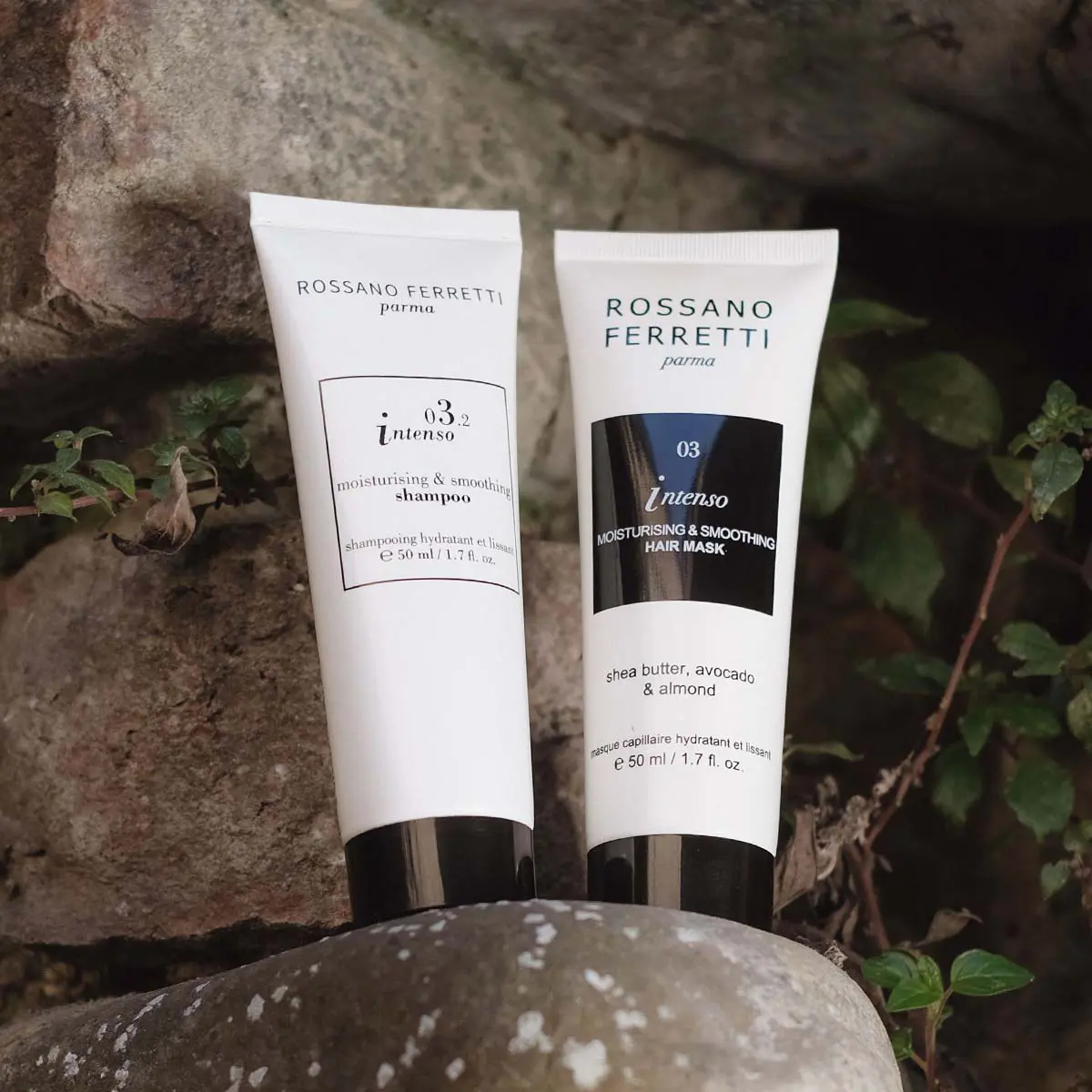 Deeply hydrate & discipline coarse or curly hair with the complete Intenso routine. Designed specifically to soften thick hair, the routine leaves hair super silky, using over 90% naturally derived ingredients like Coconut, Almond & Shea Butter, and Certified Organic Botanicals, like Grape Leaf. De-frizzes, calms, and moisturises unruly thick hair.