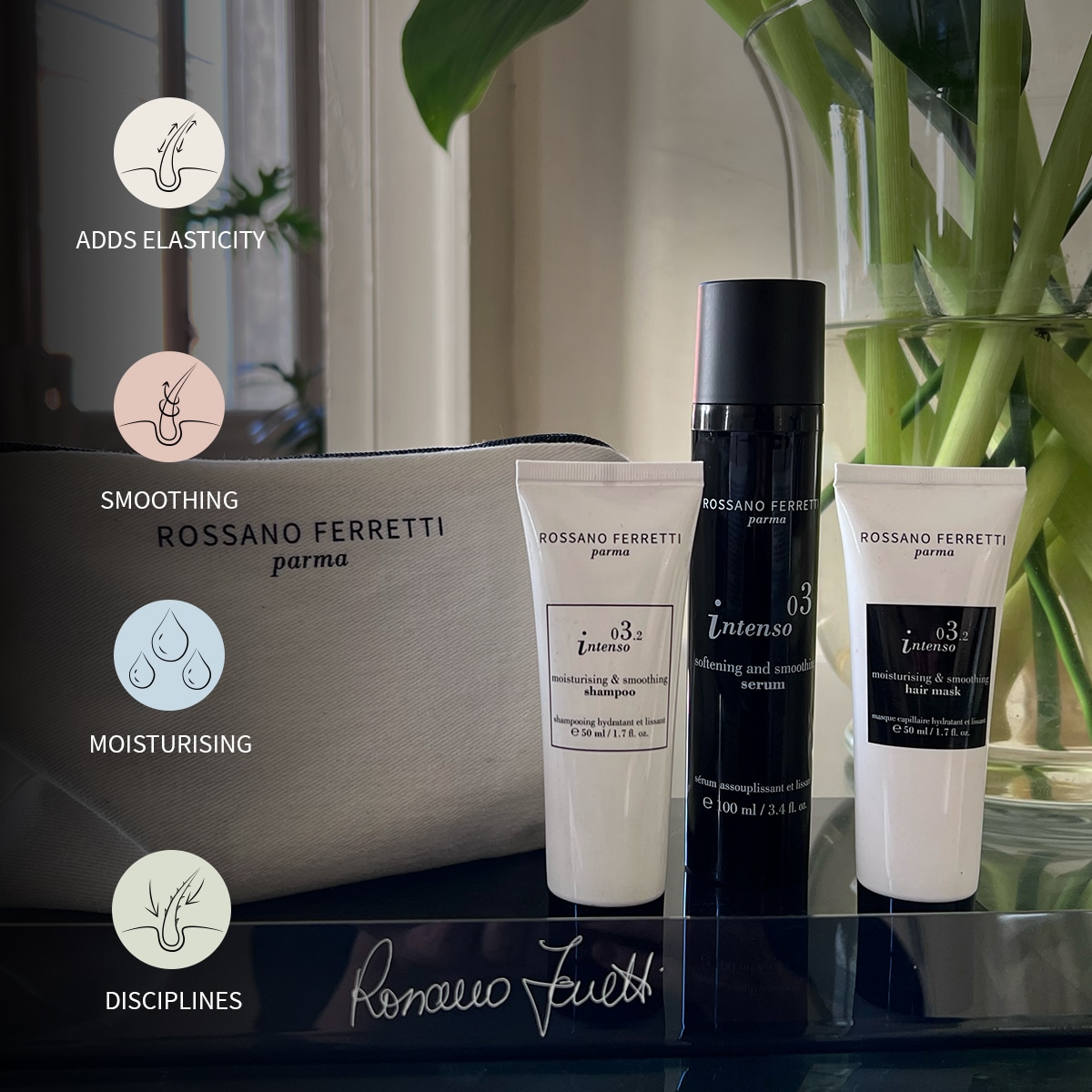 Purchase the travel kit bundle and receive a free Rossano Ferretti Parma beauty bag (100% cotton) worth € 24!