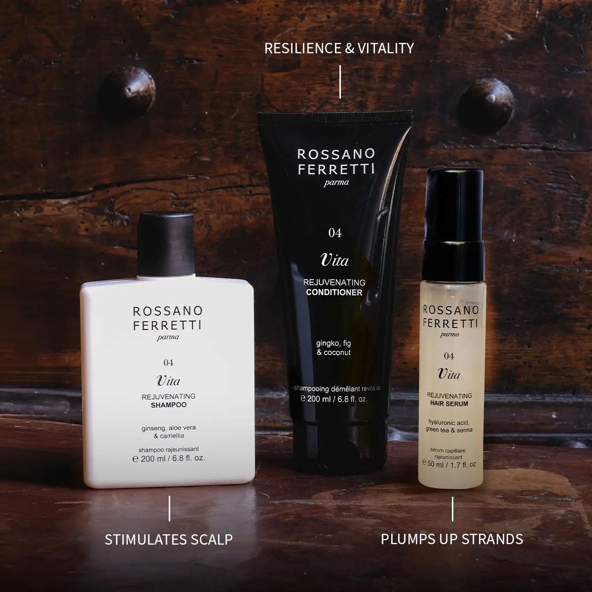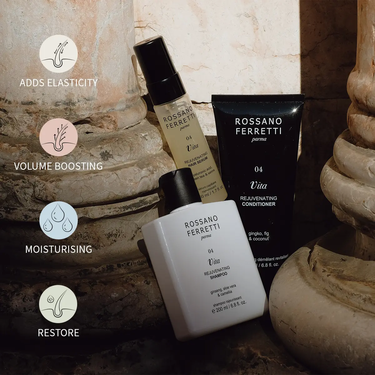 Moisturises and adds vitality to fragile, depleted or greying hair, restoring balance, elasticity, and softness.