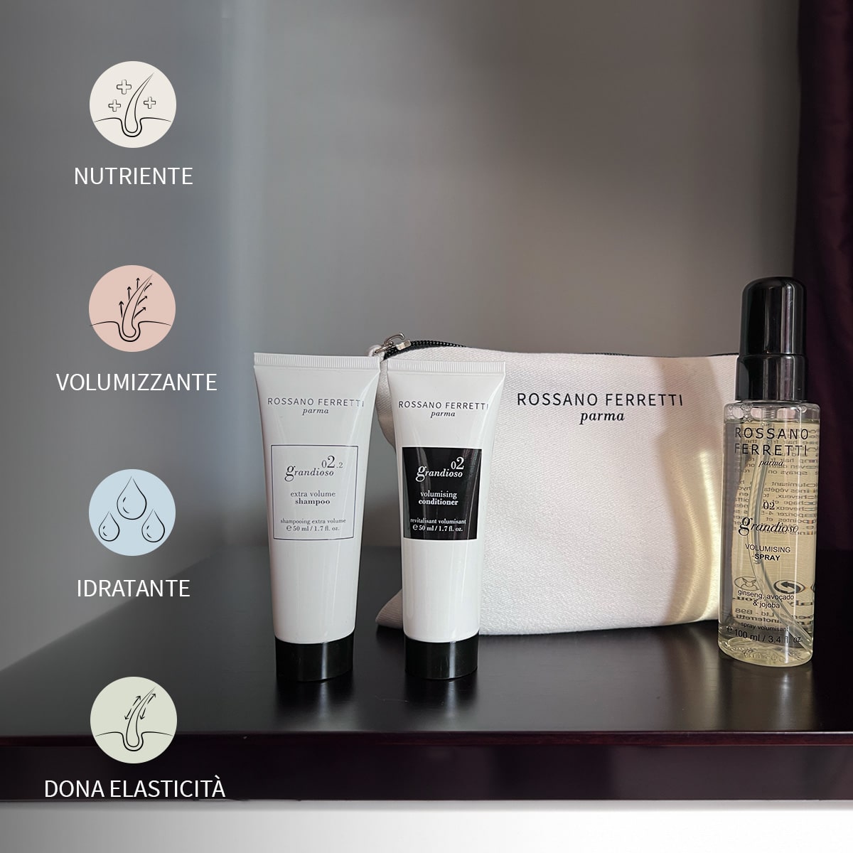 Acquista un kit da viaggio e ricevi in omaggio una beauty bag Rossano Ferretti Parma (100% cotone) del valore di €24!