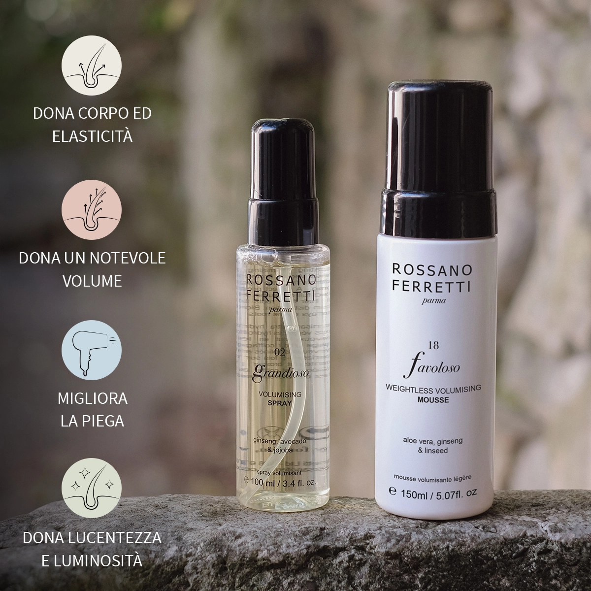 Una formula leggera che dona volume dalle radici e alle punte senza appesantire i capelli.