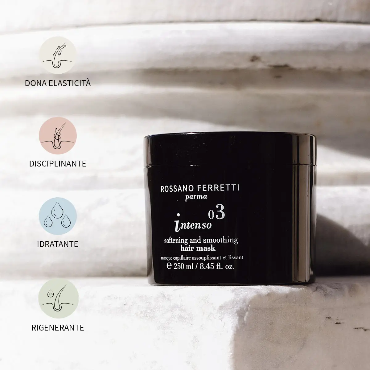 Apporta un’idratazione profonda, rendendo i capelli spessi più morbidi, setosi e luminosi.