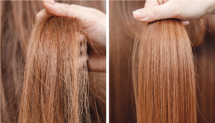 Rather than just coating the surface of the hair, bond-building treatments work to smooth the cuticle, helping to relink broken protein bonds caused by colouring, heat, or environmental stress.