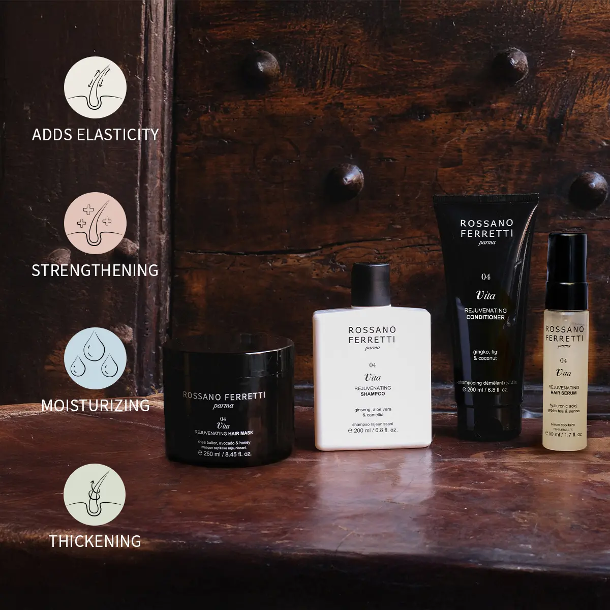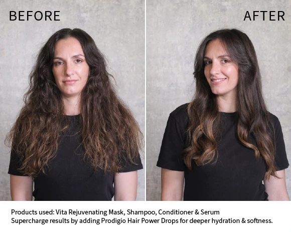Hyaluronic acid prolongs moisture retention, helping to plump up hair, adding softness & vibrancy.