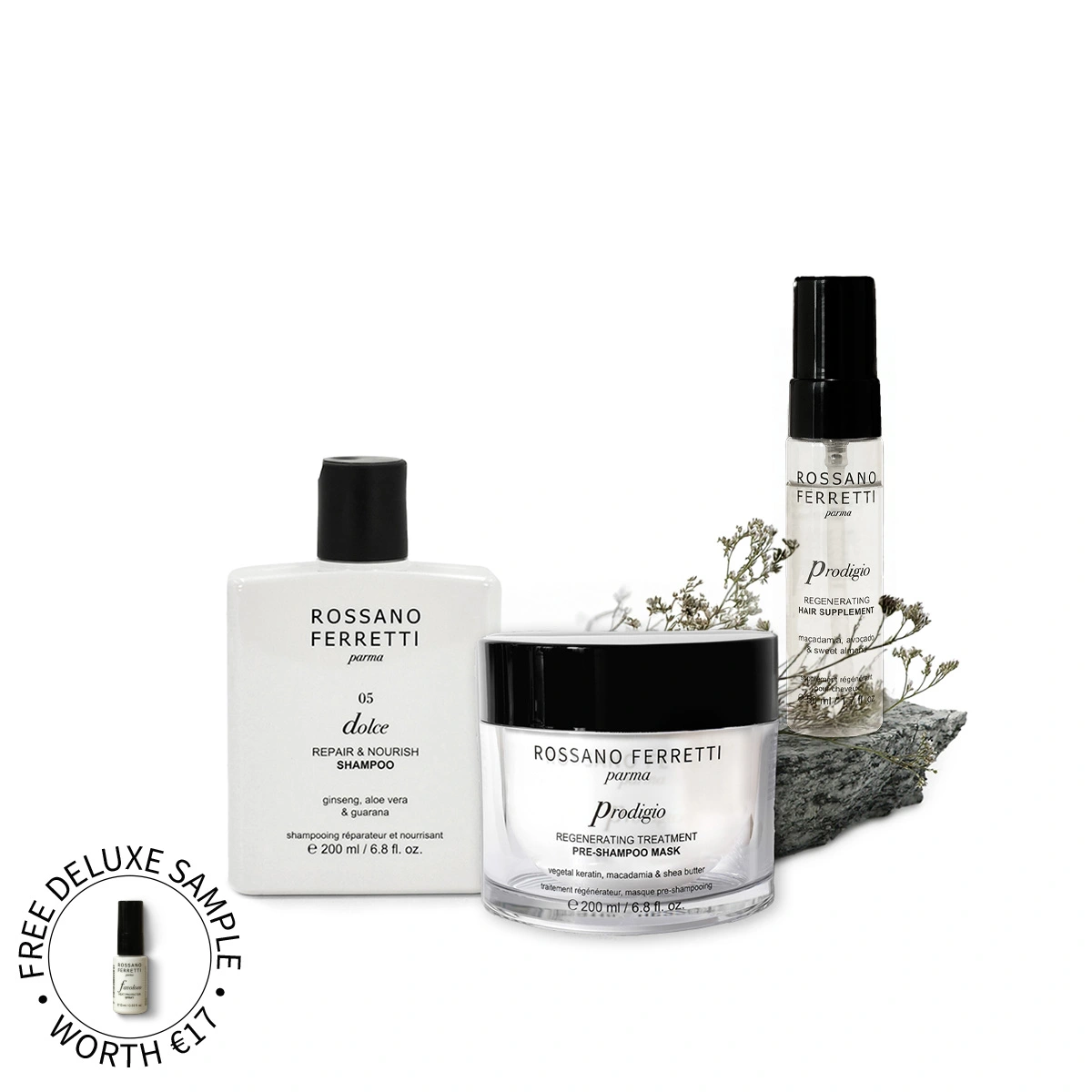 Repair damaged and over-processed hair with our complete hair repair routine. This bond building bundle includes products formulated to repair hair bonds, nourish, restore and regenerate strands for strong and healthy hair, using over 94% naturally derived ingredients, such as Ginseng, Avocado and Shea Butter.