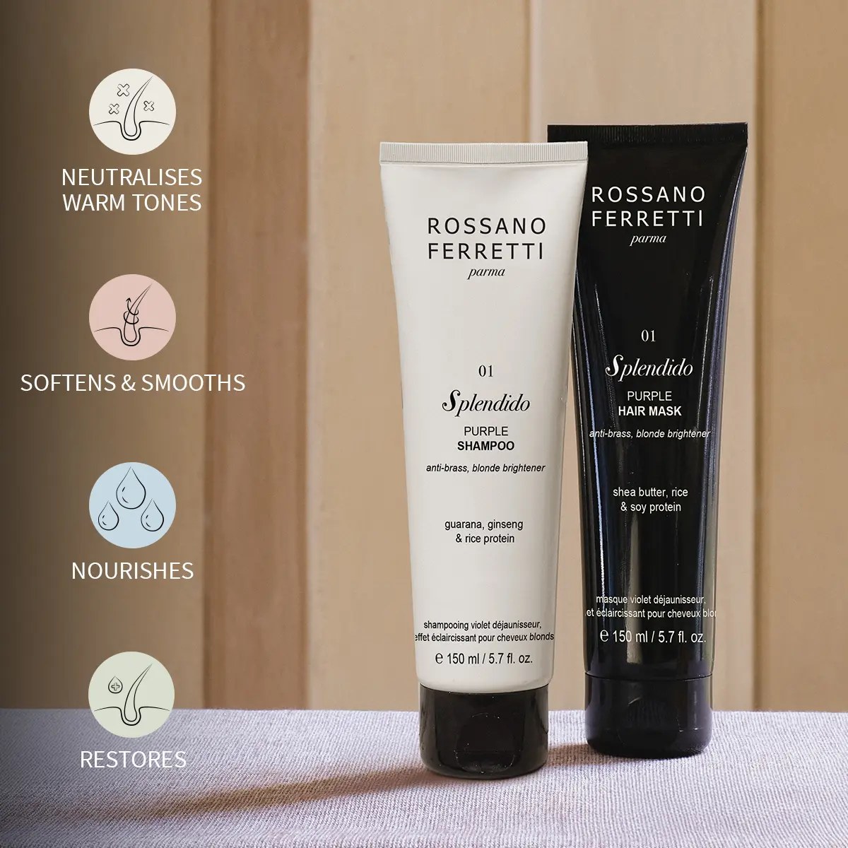 Purple pigments work to colour correct unwanted yellow or brassy tones.
