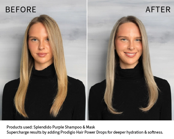 Illuminates blonde or grey tones for high shine & luminosity.