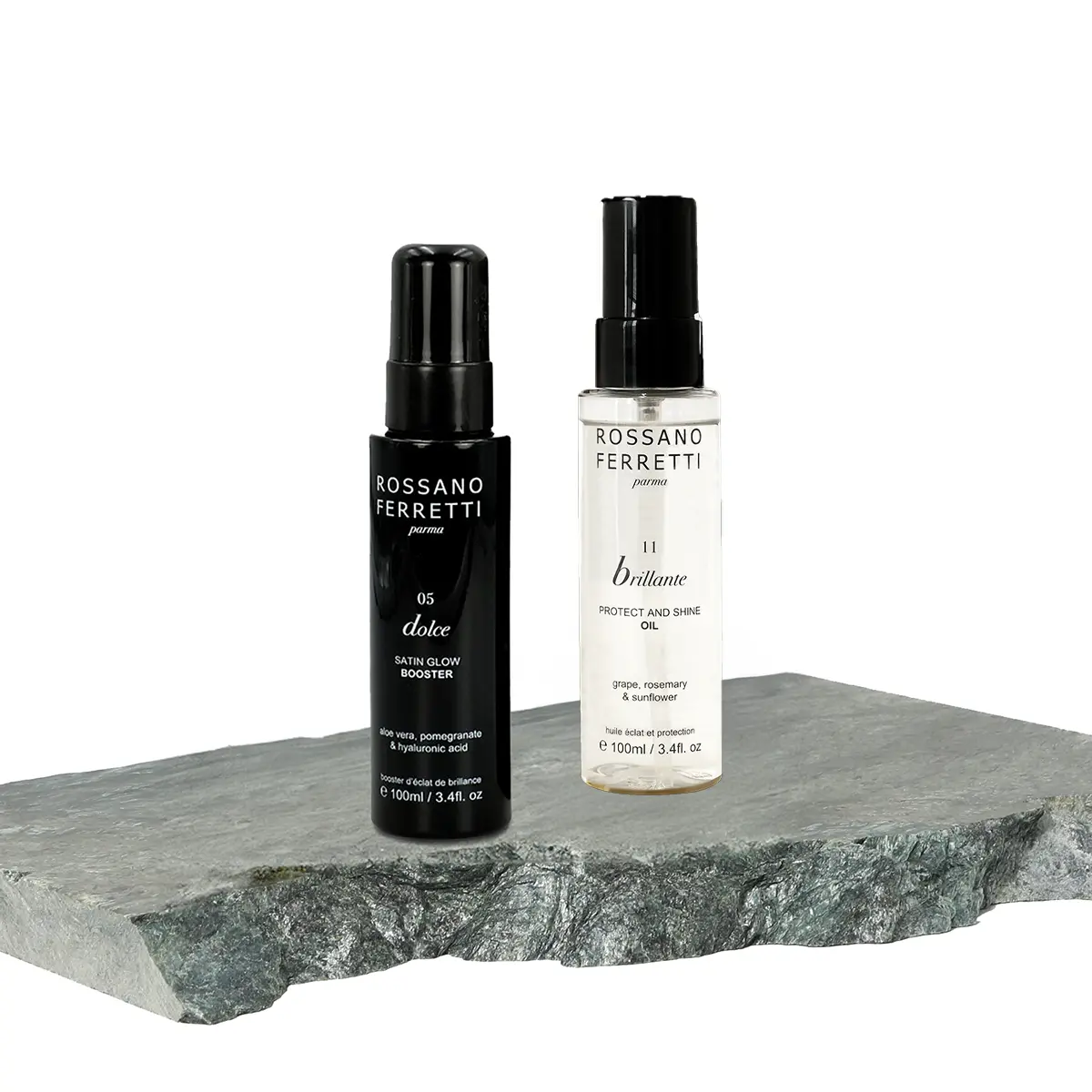 Experience unmatched radiance with the Glossy High Shine Bundle. Features the award-winning Dolce Satin Glow Booster, a hydrating blow-dry spray that combats frizz, enhances hair strength, and imparts a velvety sheen. Complementing this is the Brillante Protect & Shine Oil, a lightweight oil that adds a glossy finish and essential sun protection.