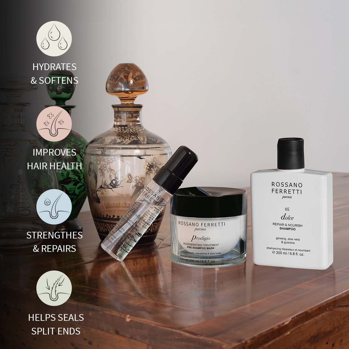 Italian inspired scents reminiscent of nature, leaving hair scented with sweet, vanilla & delicate spices.