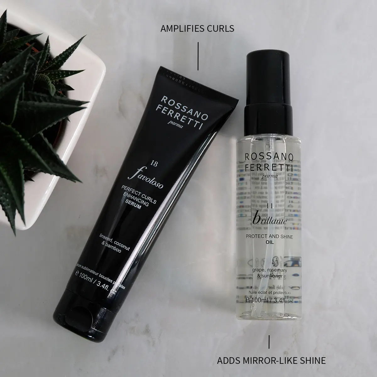Give the gift of beautiful curls this season with the Natural Curls Gift Set, perfect for festive styling & frizz control. Includes the award-winning Favoloso Perfect Curls Enhancing Serum to define & amplify natural curls, plus Brillante Protect & Shine Oil to de-frizz & leave a glossy finish with added winter sun protection.