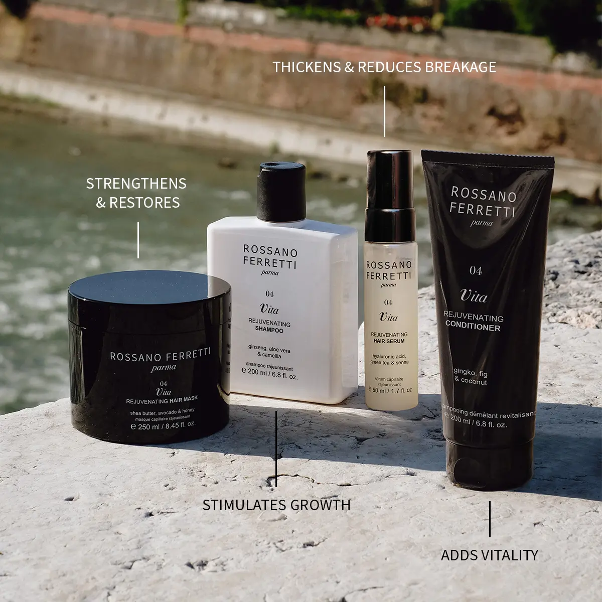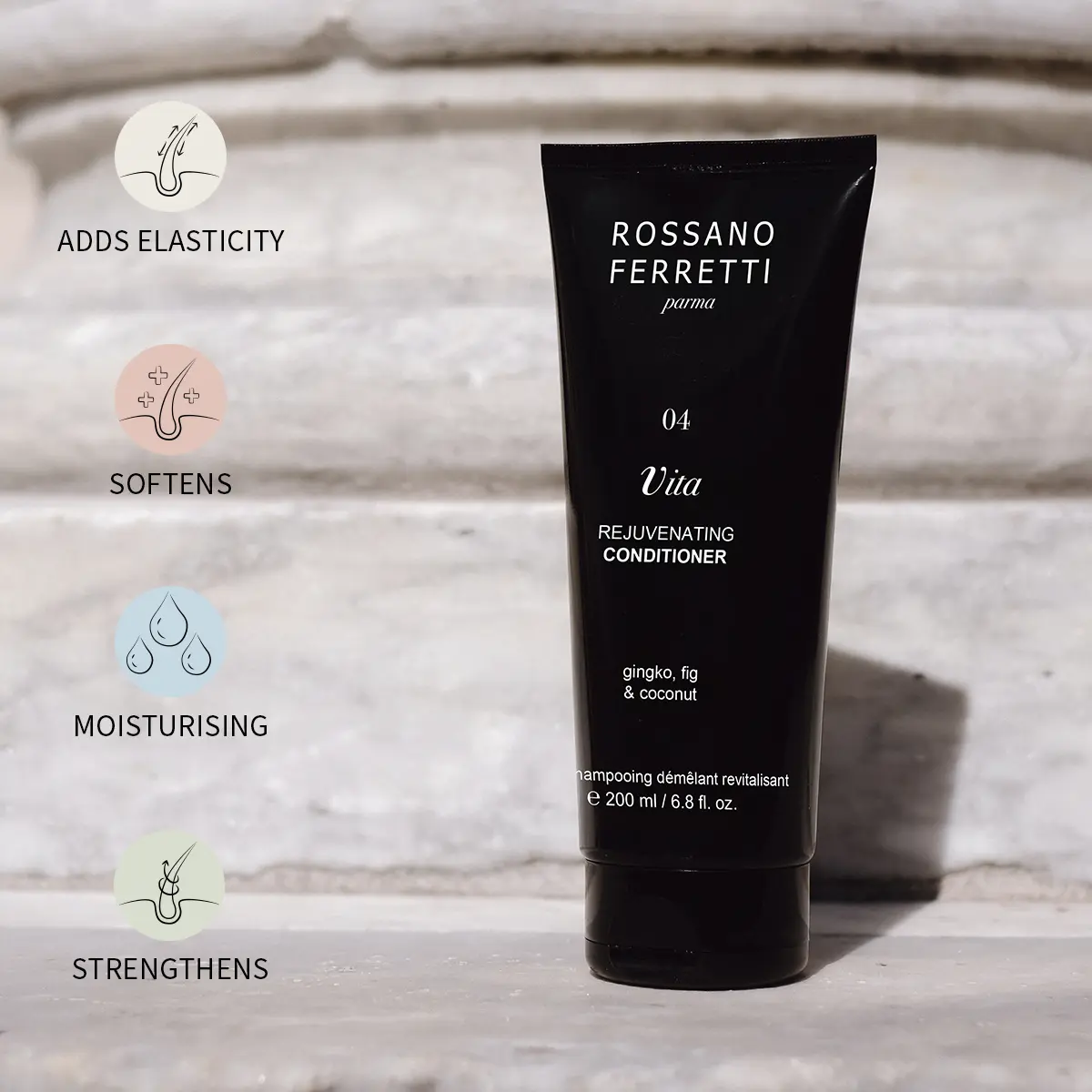 A strengthening, yet lightweight conditioner ideal for thin, fragile or maturing hair. With its unique pro-ageing formula, the Vita Rejuvenating Conditioner uses 95% naturally derived ingredients like shea butter, coconut & avocado to fortify, hydrate & protect against breakage, leaving hair soft, light & fluffy to touch.