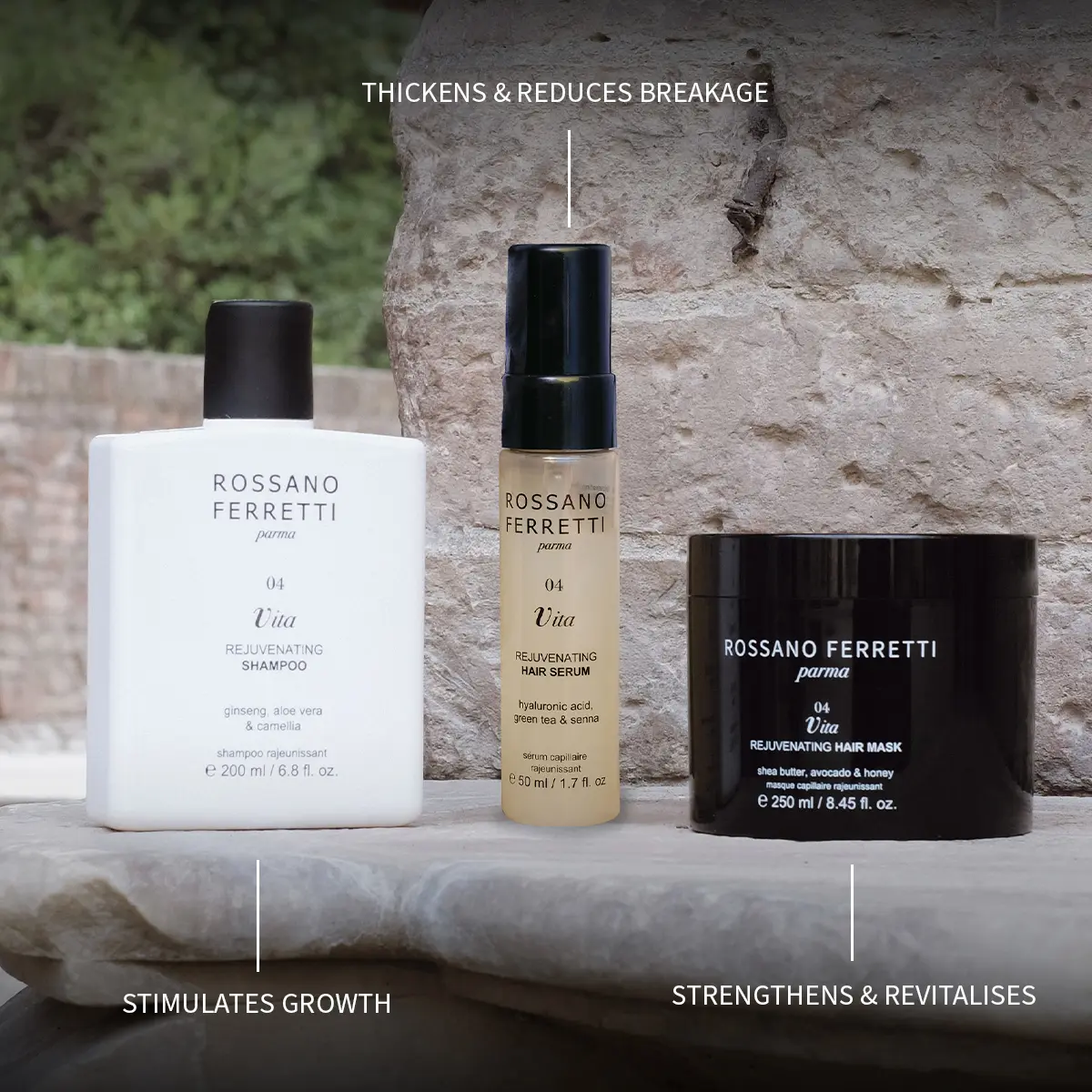 Apply 2-3 pumps of Rejuvenating Serum on the scalp & damp hair. Blow-dry or air-dry